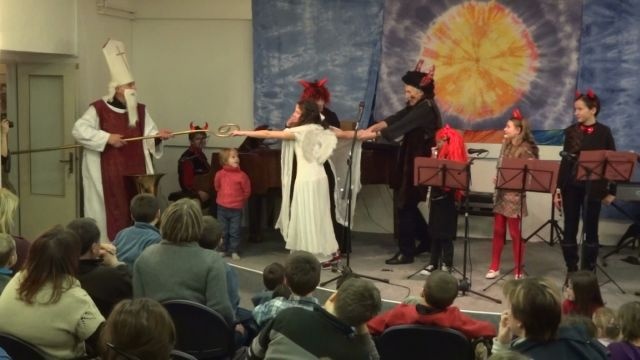 Děti se poté přesunuly do ateliéru výtvarného oboru na představení pro nejmenší děti připravené divadélkem Lady Majerové s názvem "Čertův švagr" s hudebním doprovodem a loutkami. Na závěr si odvážné děti mohly přijít k Luciferovi pro dukátek z kouzelného kabátku a společně zazpívat s kytarou a čertem Vaškem.