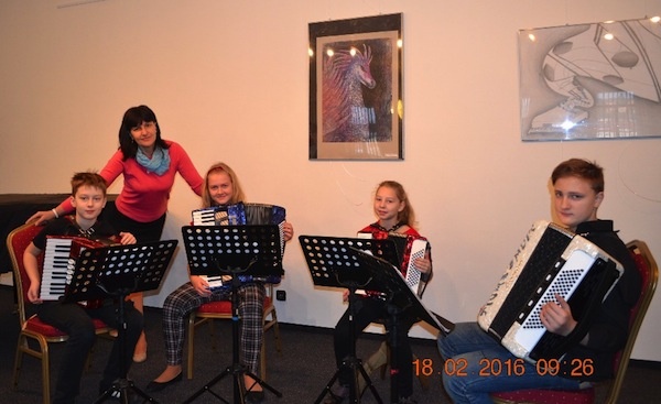 Gratulace patří také žákům Miroslavy Halatové k úspěchu v okresním kole soutěže ve hře na akordeon, kterého dosáhli dne 18. 2. 2016 ve Fulneku. Adam Tesař, Darina Madziová, Magdaléna Rýparová a Adam Klemš získali 1. místo s postupem do krajského kola v komorní hře (I. kategorie). Ve stejné disciplíně, avšak ve II. kategorii, získali rovněž 1. místo s postupem do krajského kola Kamila Dluhošová, Barbora Káňová a Alice Ondovčáková. Adam Tesař dále získal 3. místo v sólové hře (II. kategorie).
