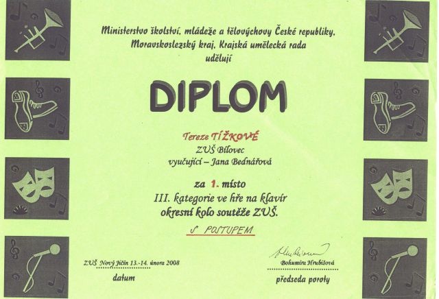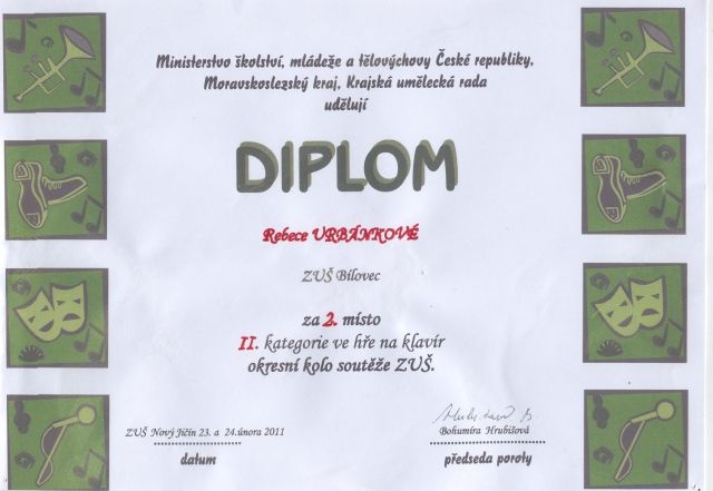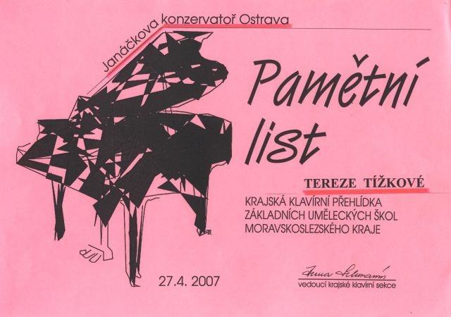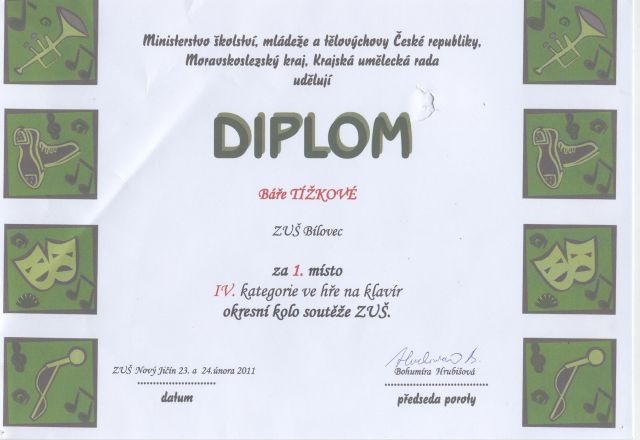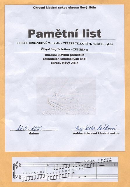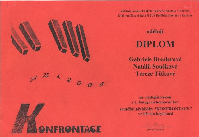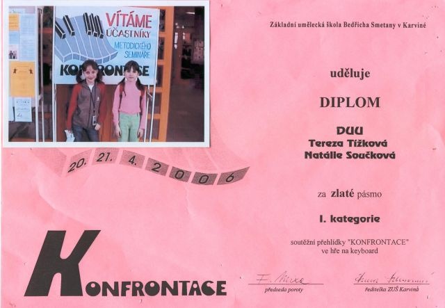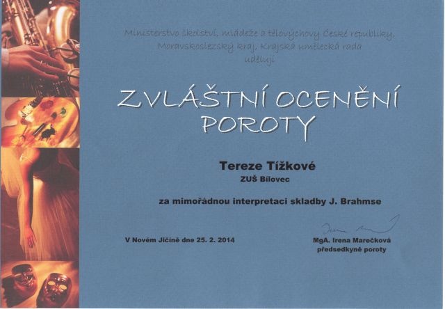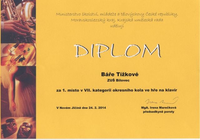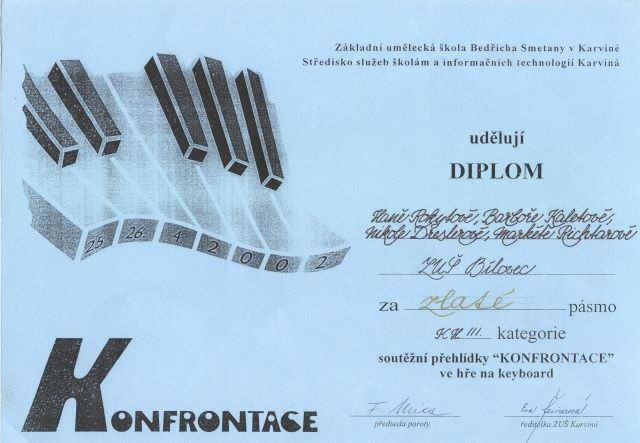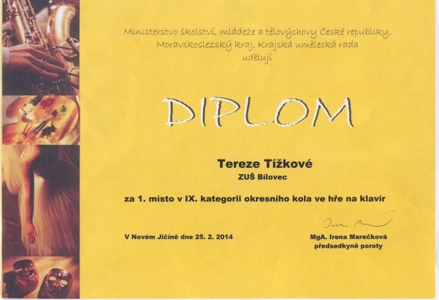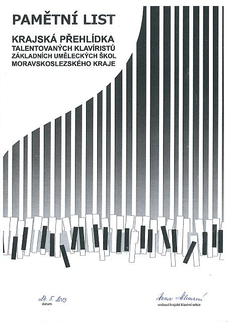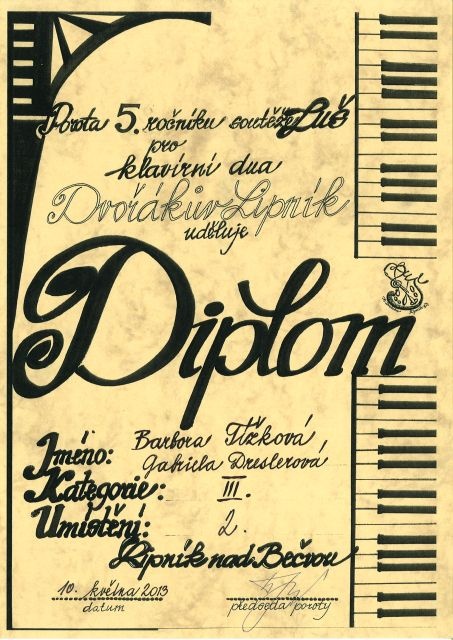 Celostátní soutěž pro klavírní dua v ZUŠ Lipník nad Bečvou v roce 2013- 2.místo.