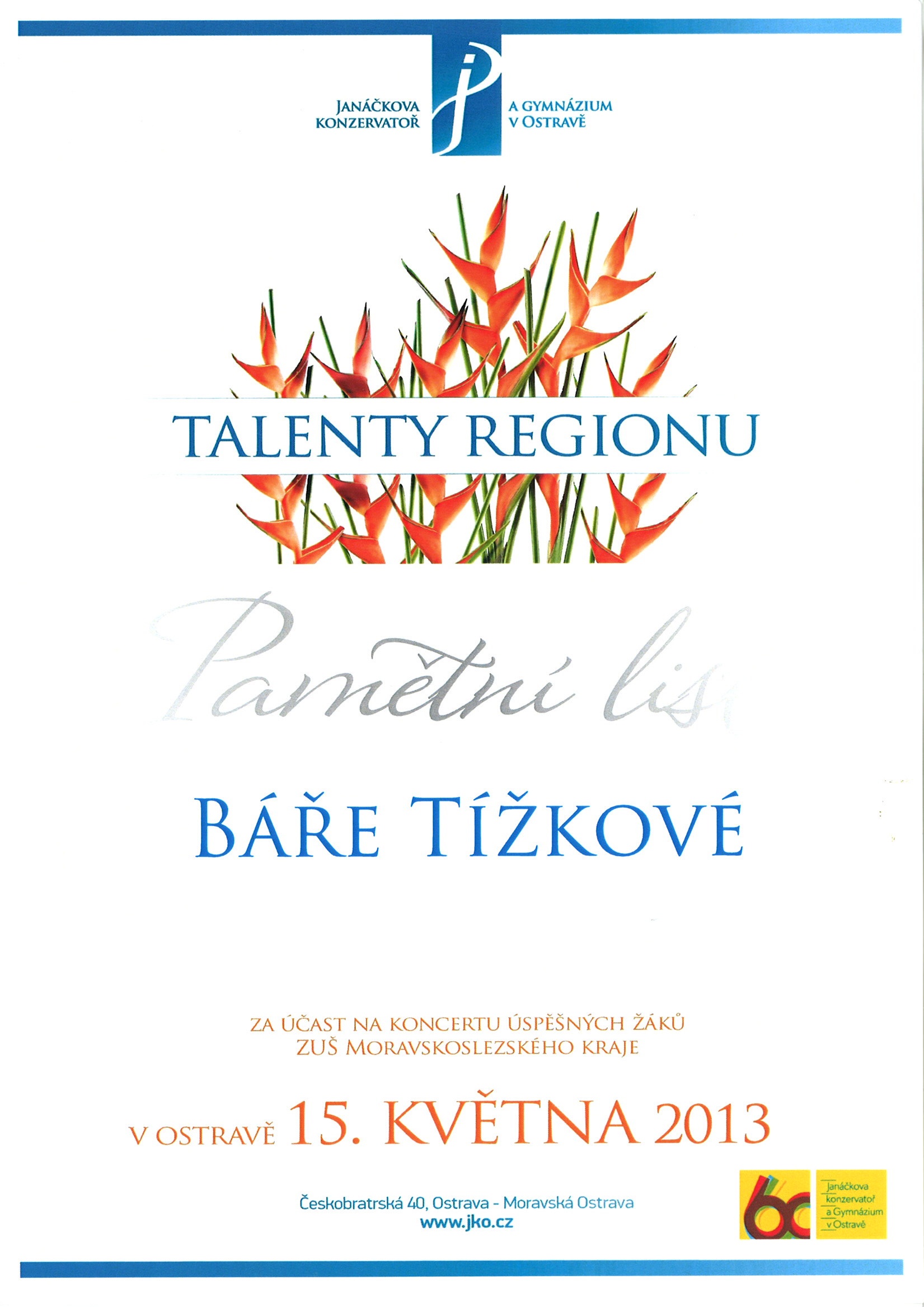 Reprezentace B.Tížkové a G.Dreslerové na akci pořádanou Janáčkovou konzervatoři v Ostravě - Talenty regionu 2013.