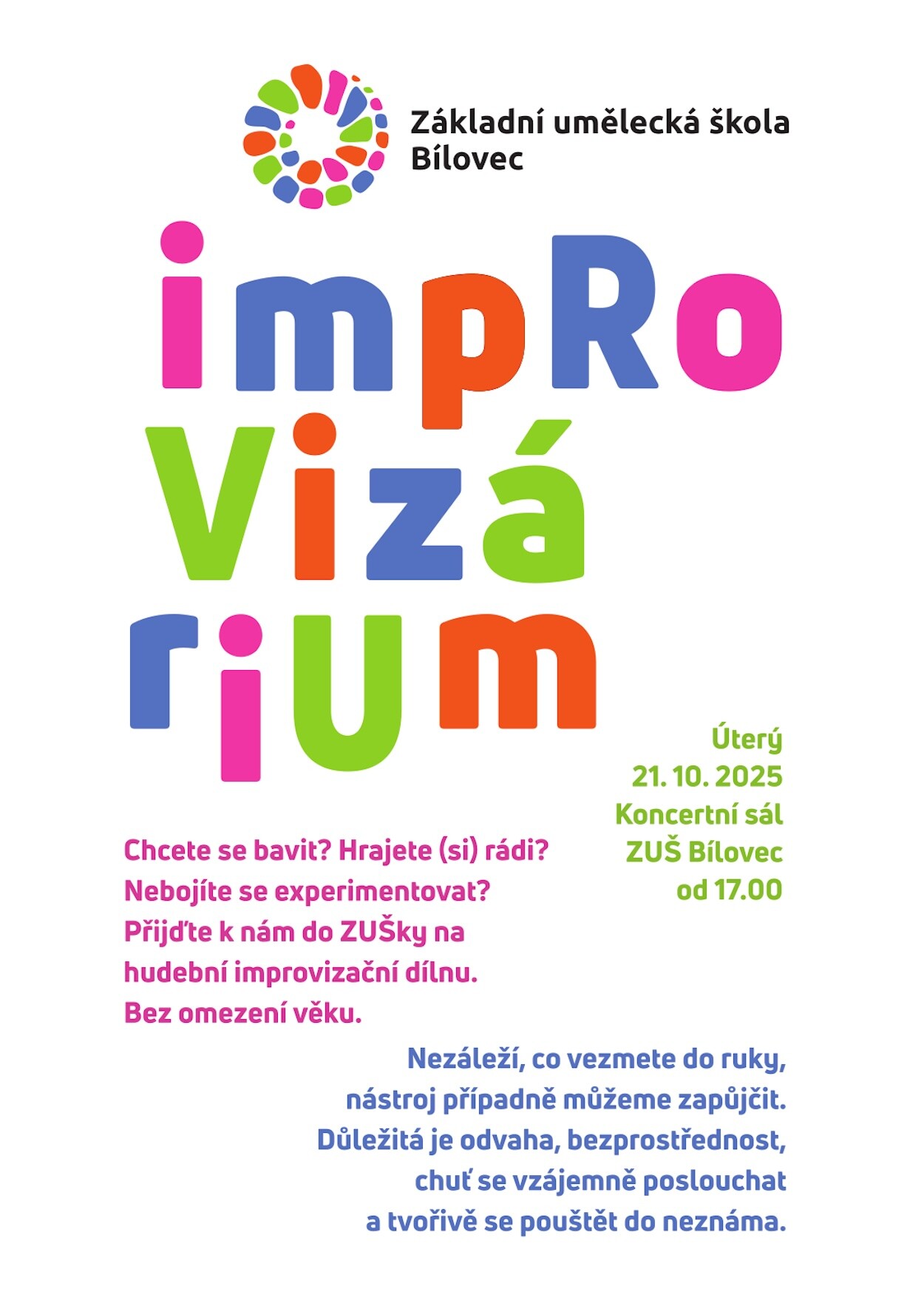 Ve čtvrtek 20. února 2025 proběhla v ZUŠ Bílovec akce s názvem Improvizárium. Cílem nebylo naučit zaměstnance a rodiče žáků ZUŠ vymýšlet improvizované výmluvy, proč vjeli autem do pěší zóny, ale vyzkoušet si hudební improvizaci. Tato hudební „dílnička“ vedená učitelem hry na kytaru, klavír, skladby a improvizace, panem Vojtěchem Jandou (alias Vojta Violinist) si kladla za cíl ukázat účastníkům, jak může vznikat hudba „jen tak“.